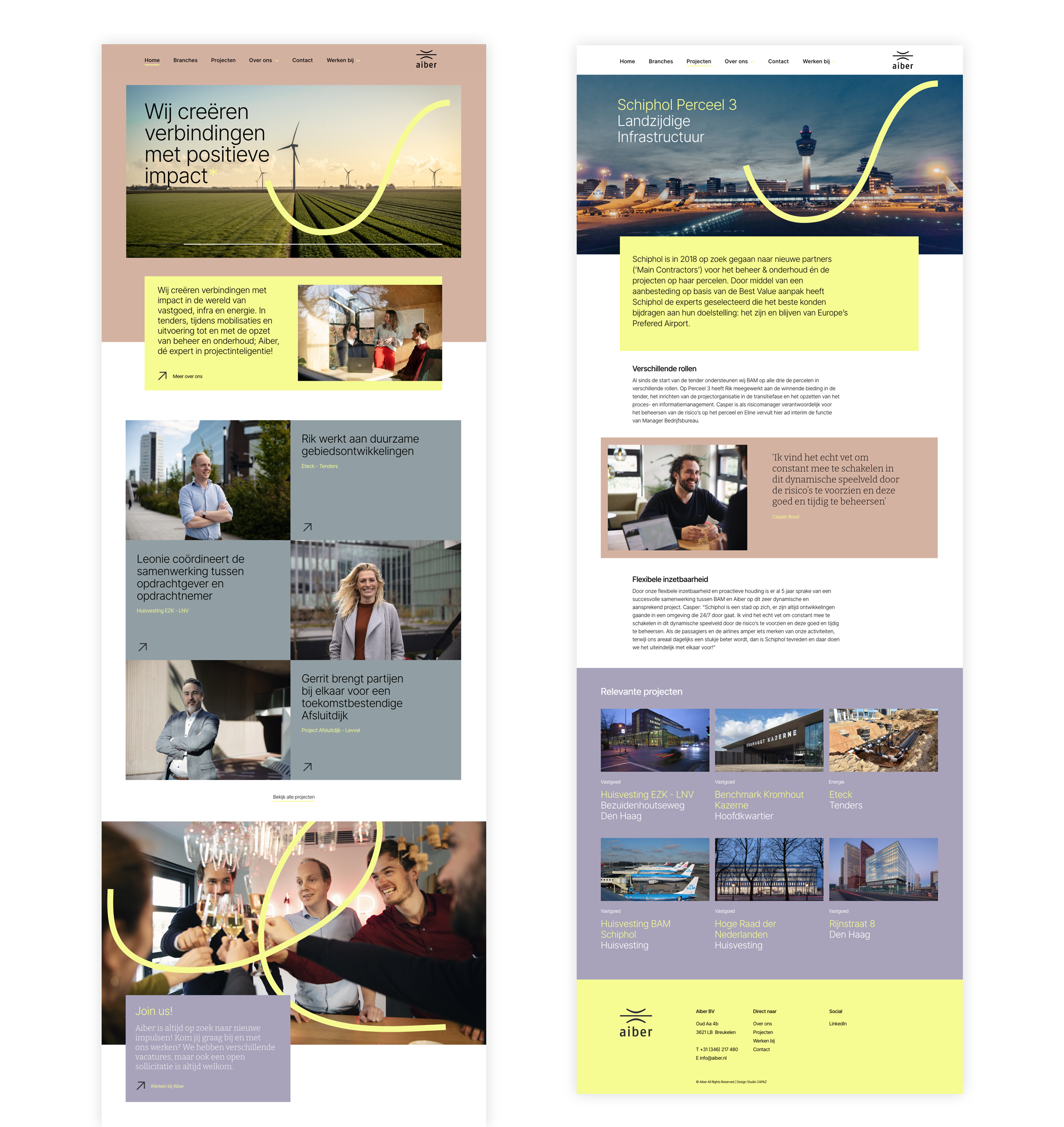 Aiber creëert verbindingen met impact in de bouw-, vastgoed- en infrasector gedurende alle projectfasen op het raakvlak van contract, gebruik en proces. Een proces waar verbinding centraal staat? Daar hoort een frisse uitstraling en een open gezicht bij. Wij hebben een aangescherpte merkpersoonlijkheid ontwikkeld en deze vertaald naar een nieuwe visuele identiteit, brand movie en fotografie.