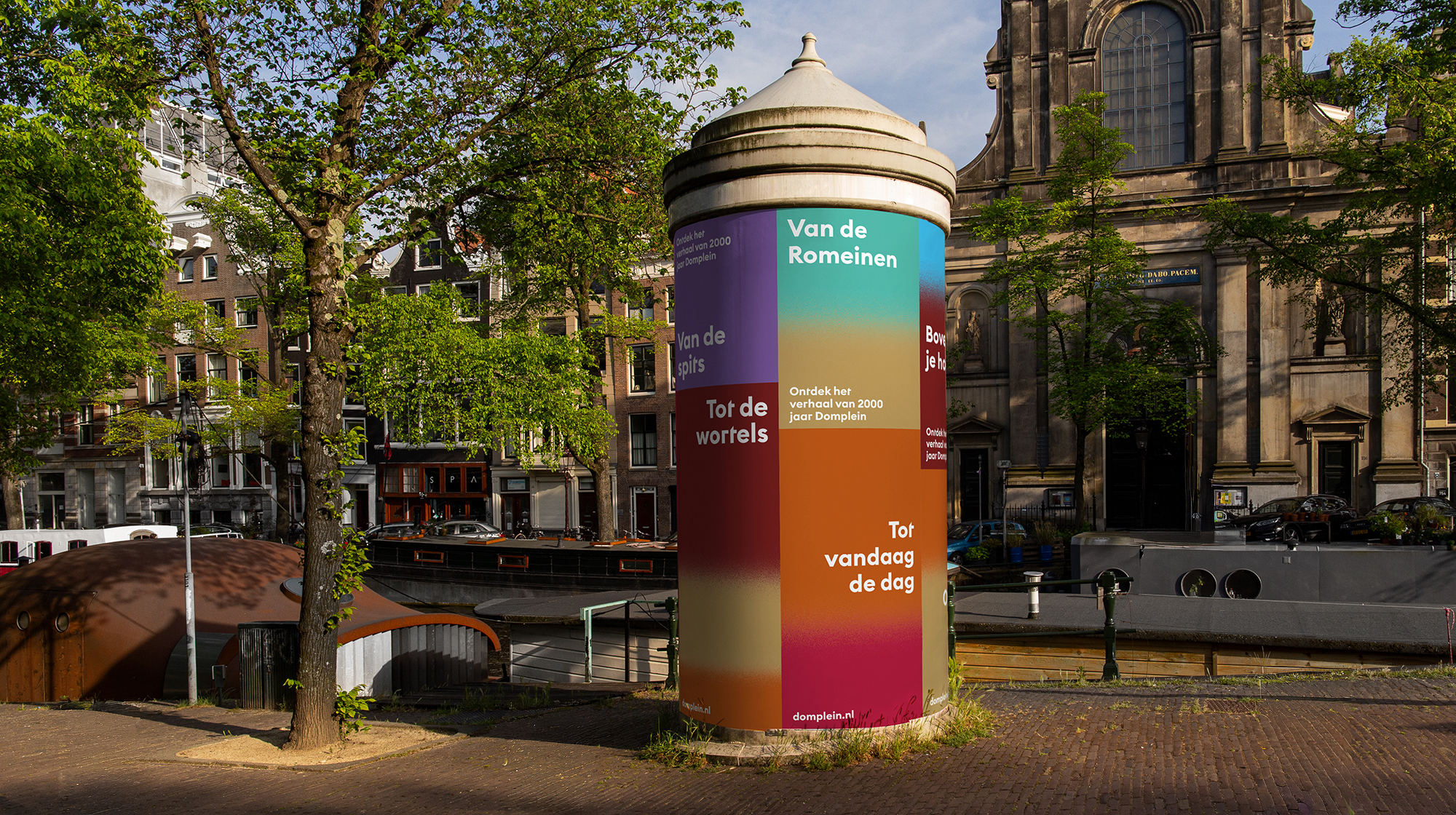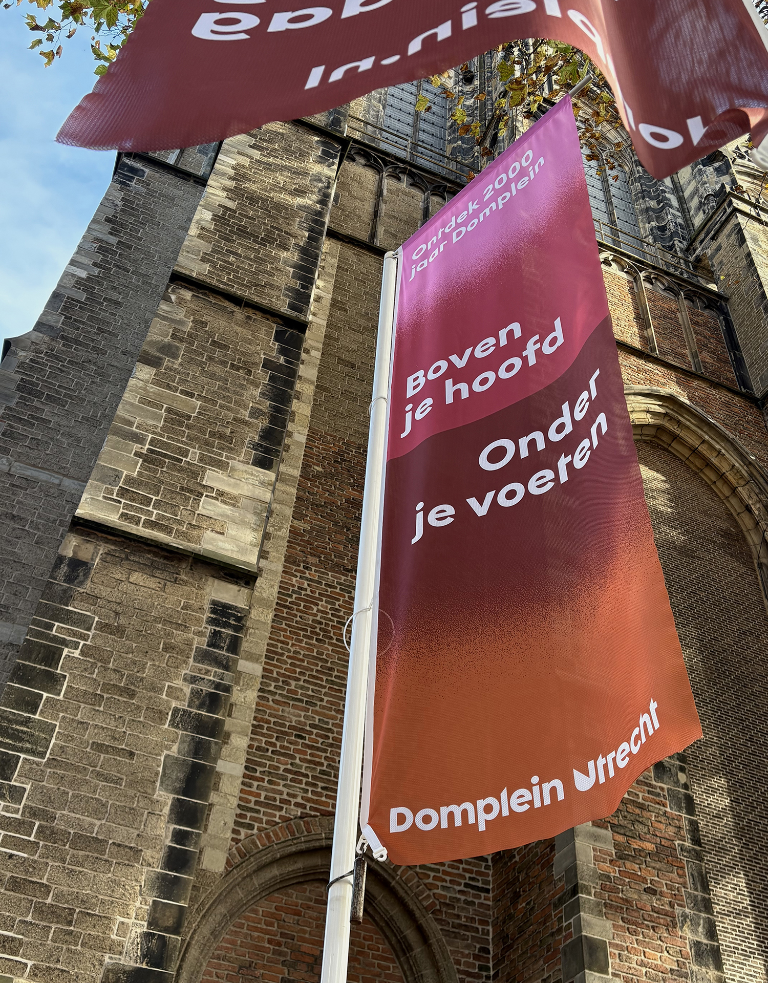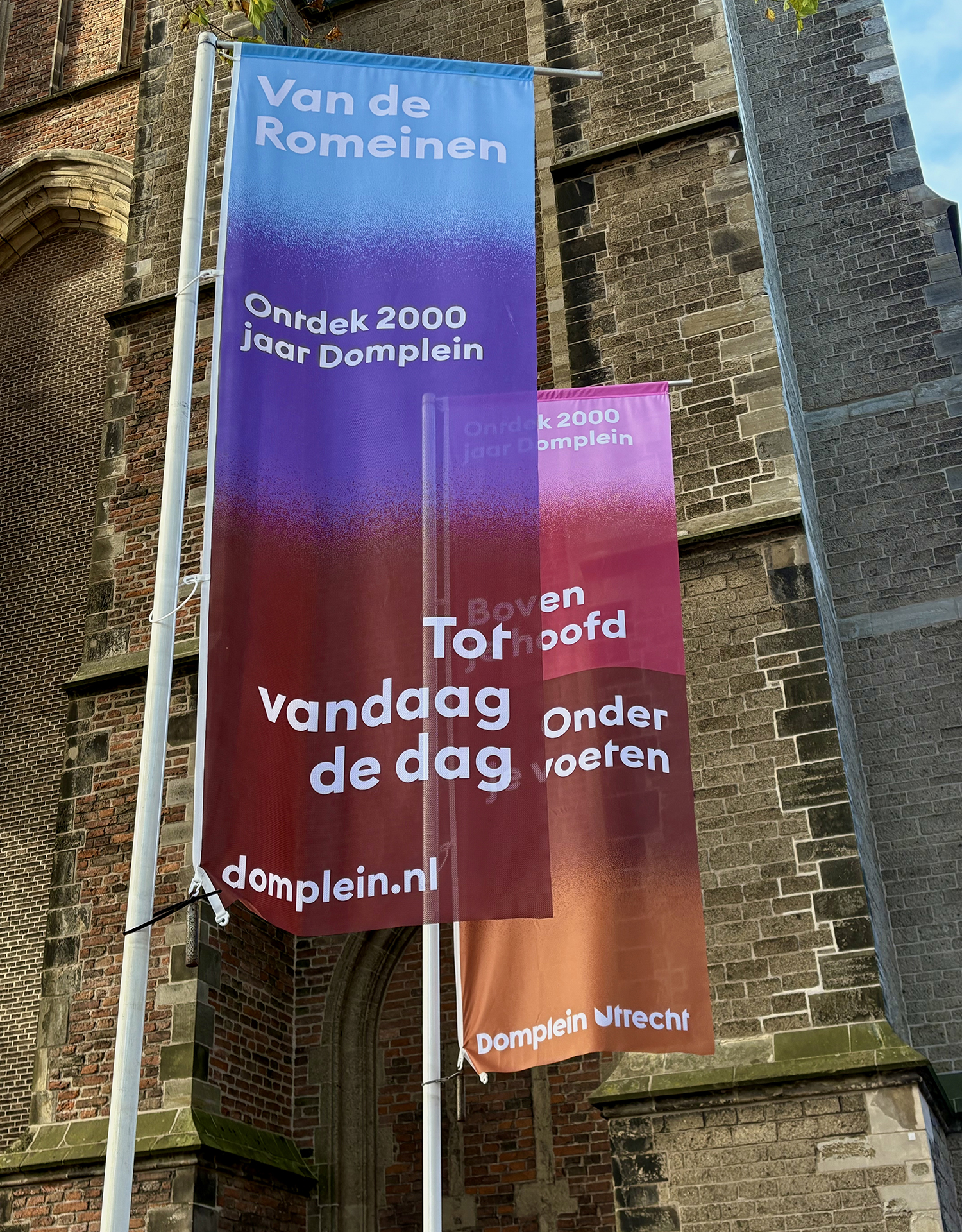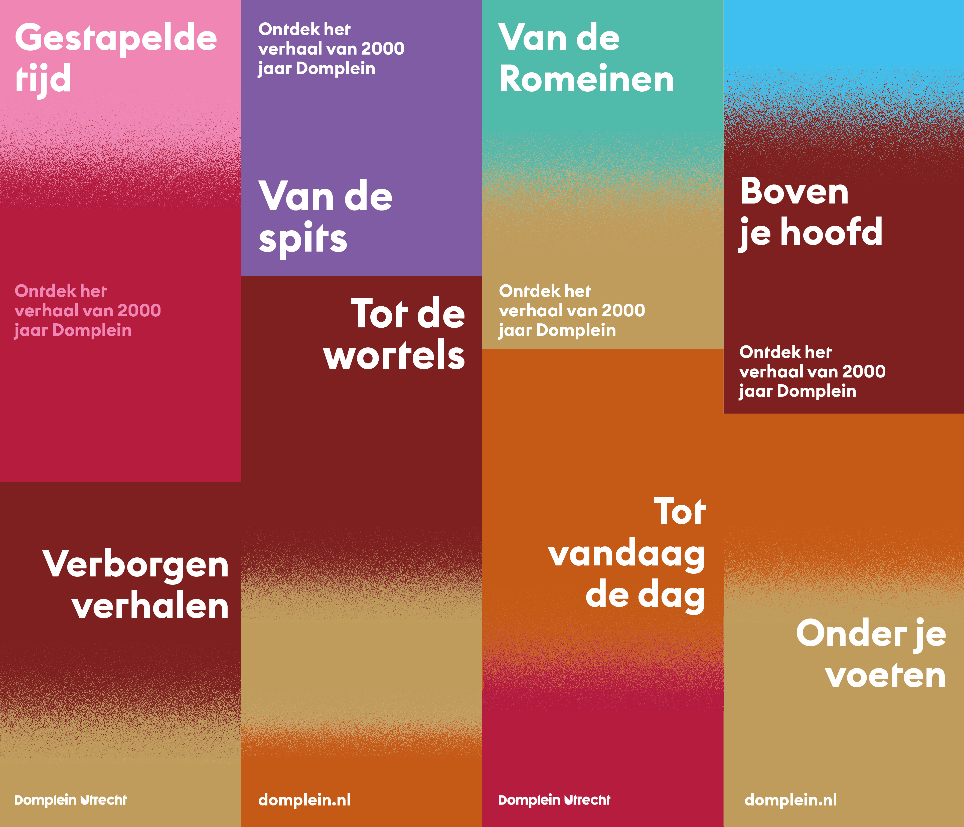 Van de Romeinen tot vandaag de dag. Laag op laag, boven en ondergronds. Om de de inhoudelijke gemeenschappelijke waarde van het Domplein naar voren te laten komen zijn deze lagen vertaald naar een visuele stijl.