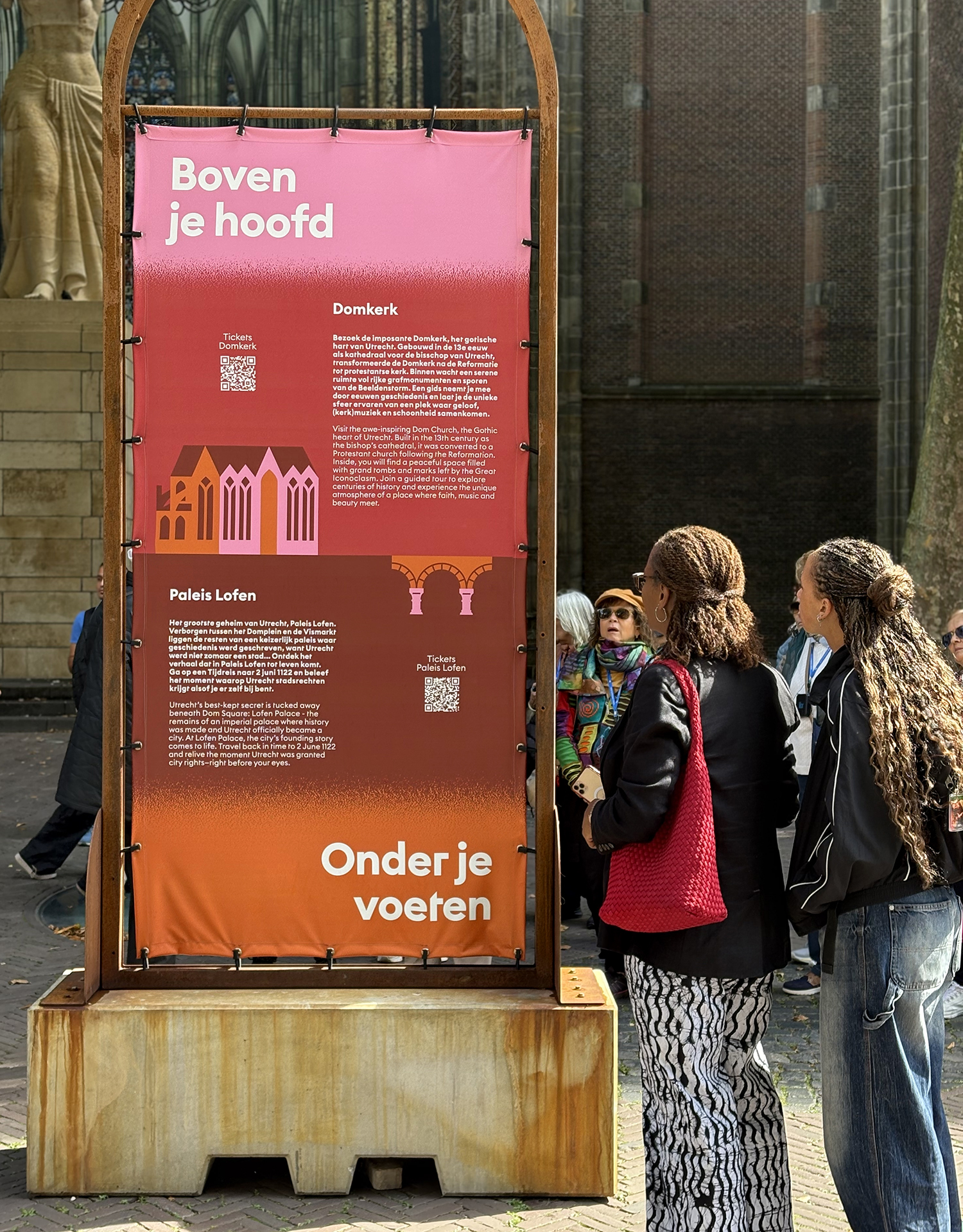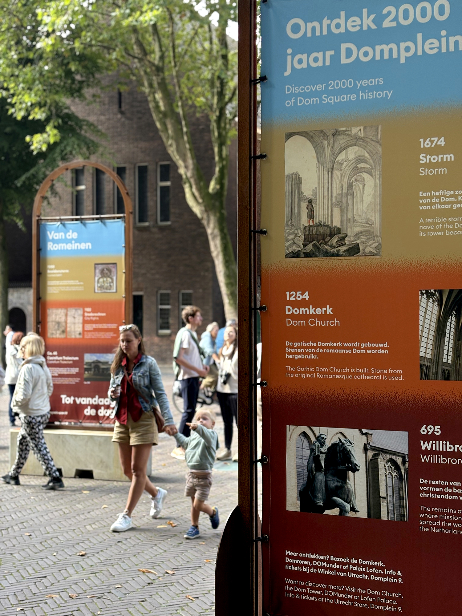 Door middel van een kleine openlucht expo maken bezoekers kennis met de historie van het Domplein en vinden zij hun weg naar de verschillende bezoekers locaties.